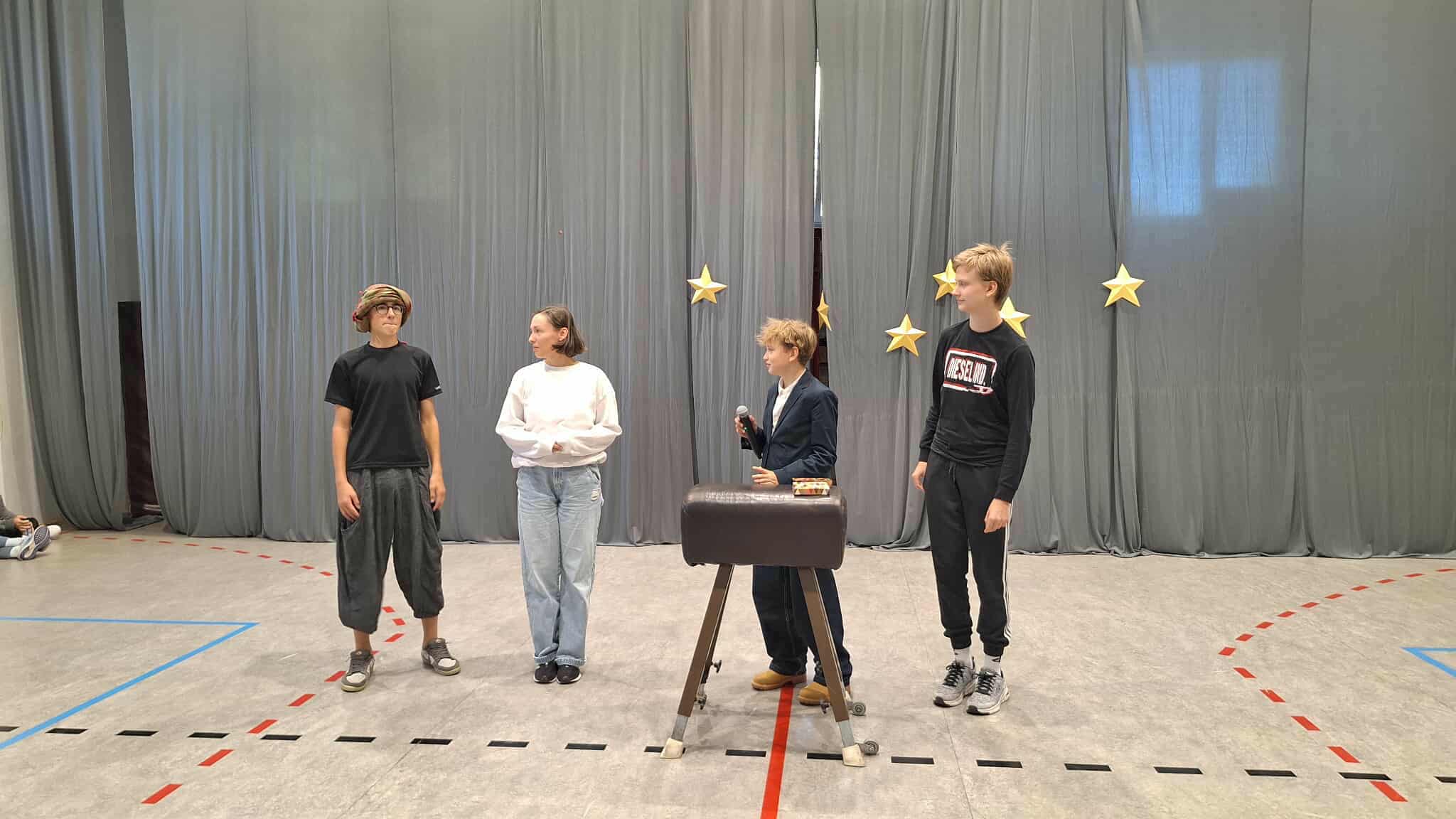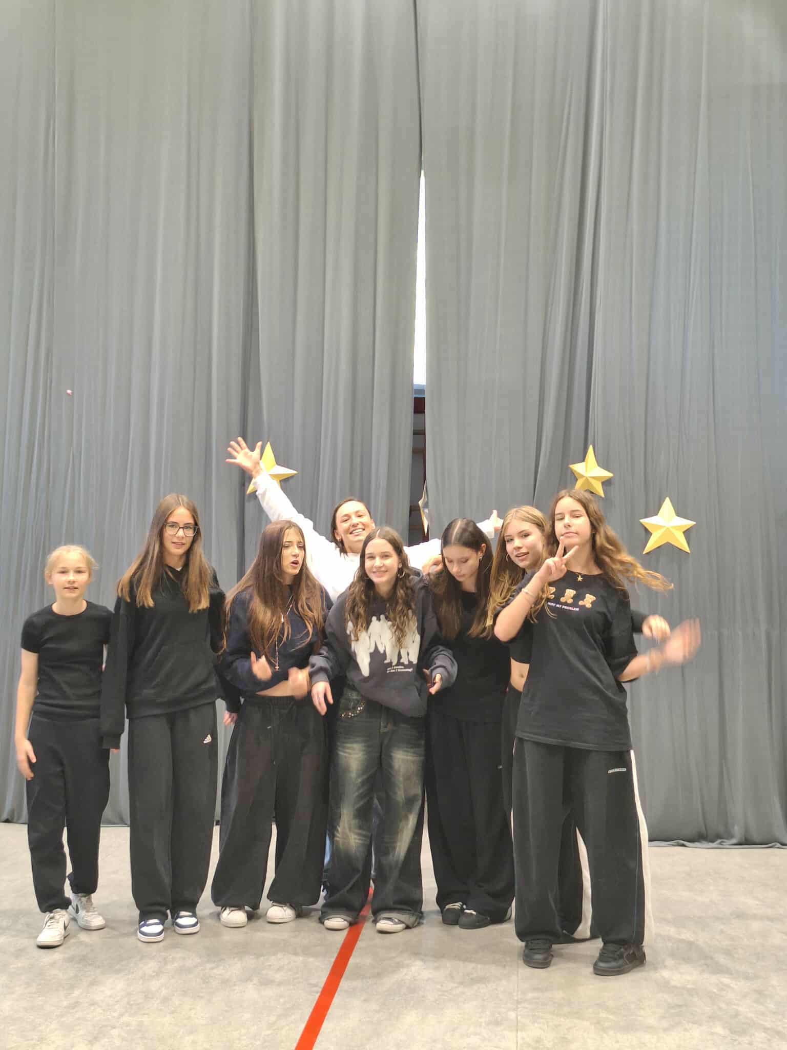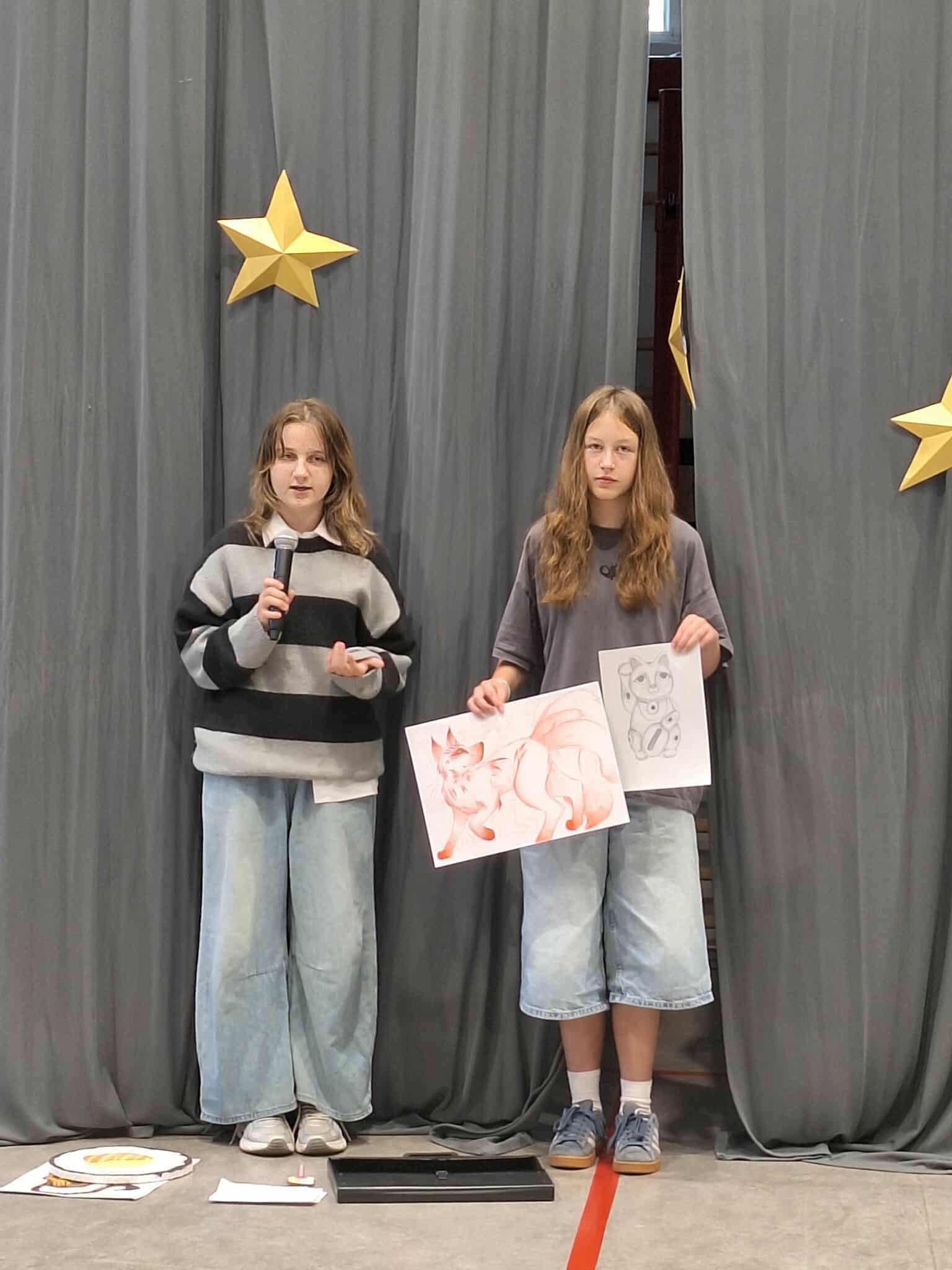 - a klasy 7 i 8 miały okazję pokazać swoje zdolności podczas „talent show” – nasi zdolni uczniowie i uczennice zaprezentowali: belgijkę, taniec cheerleaderek, boys band, kozłowanie piłki, sztuczki karciane, układanie kostki Rubika, utwór gitarowy, sylabizowanie po angielsku, talent kulinarny – biszkopt francuski oraz talent plastyczny – rysunki inspirowane kulturą japońską. Zwyciężyły dziewczęta z 8b z układem tanecznym – gratulujemy!
