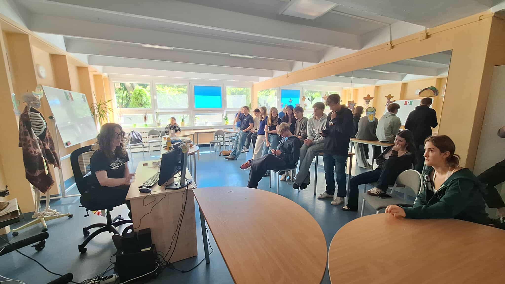 - licealiści wzięli udział niezwykle ciekawych i angażujących w warsztatach z języka migowego oraz gwary warszawskiej („szanowna frekwencja” z wielkim entuzjazmem miga żółwia!);