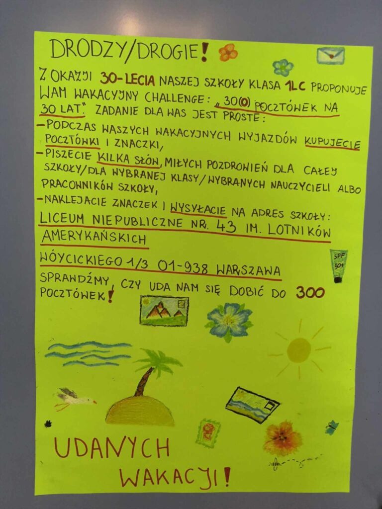 Przez cały ten rok szkolny świętowaliśmy trzydziestolecie naszego liceum! Z tej okazji klasa 1Lb nagrała film z życzeniami, a klasa 1Lc wraz z Panią Natalią proponuje aktywność na… wakacje! Zapraszamy do obejrzenia i do udziału 🤩