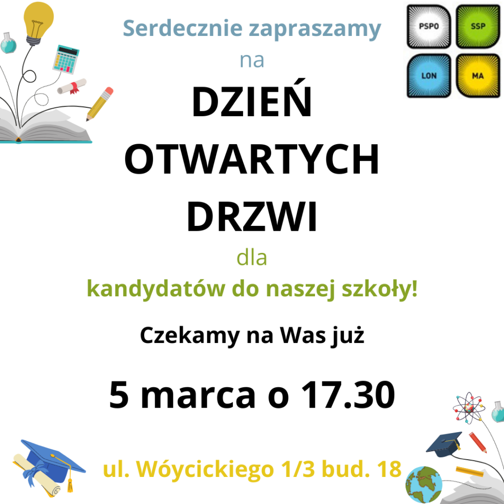 Wszystkich zainteresowanych uczeniem się w naszej szkole serdecznie zapraszamy na dzień otwartych drzwi w środę 5 marca o godzinie 17.30!