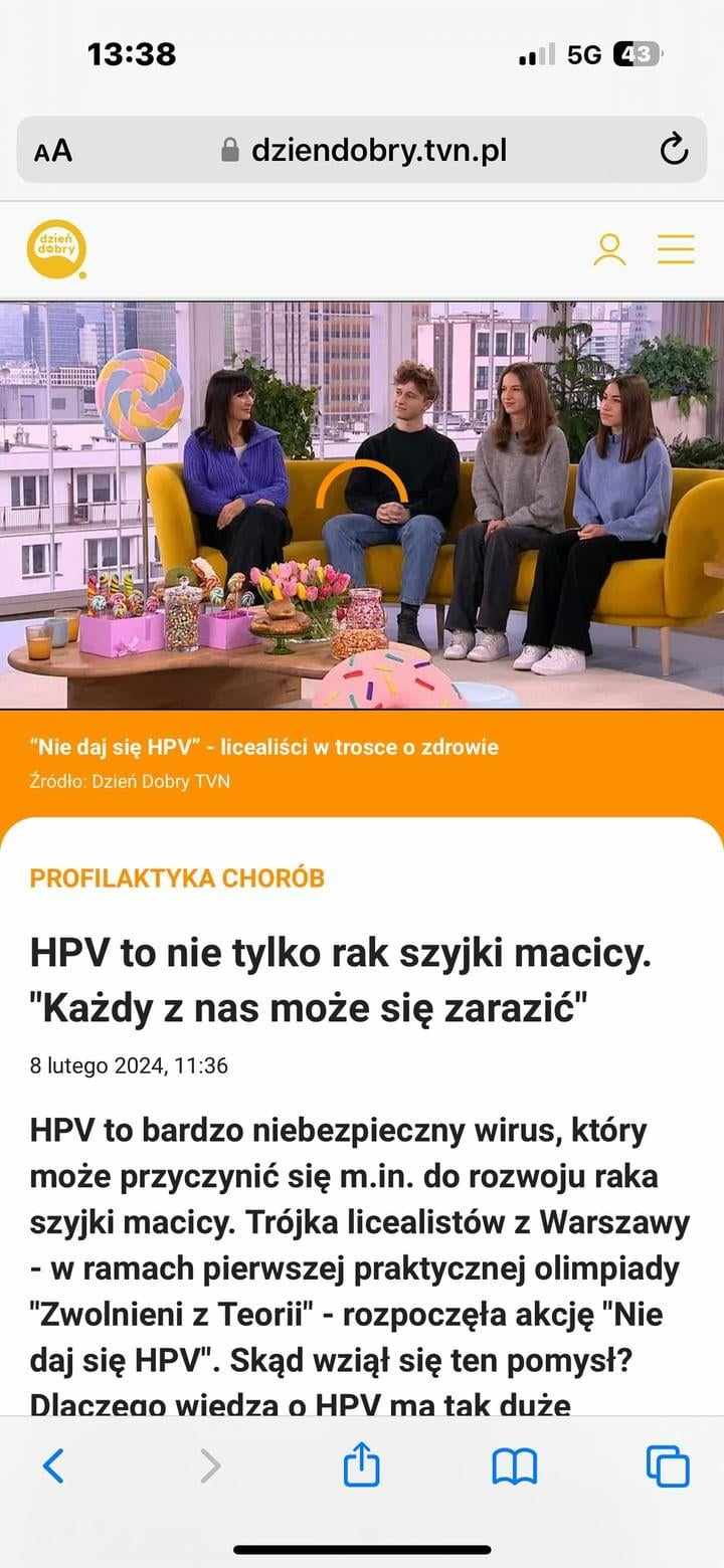 Nasi „Zwolnieni z Teorii” – Jagoda, Natalia i Bartek z klasy 3L, z projektem „Nie daj się HPV”, wystąpili ostatnio w programie „Dzień Dobry TVN”. Jesteśmy bardzo dumni, że zajęli się tak ważnym tematem i tak prężnie działają! Gratulacje!
