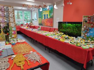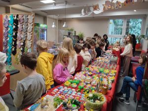 Dziękujemy uczniom, rodzicom i nauczycielom, którzy podarowali na kiermasz swoje prace. Dzięki Wam powstało piękne kiermaszowe stoisko. W czasie tegorocznego kiermaszu wsparliśmy Telefon Zaufania dla Dzieci i Młodzieży 116 111 kwotą 9680zł, za co serdecznie dziękujemy wszystkim odwiedzającym nasz charytatywny kramik z rękodziełem.