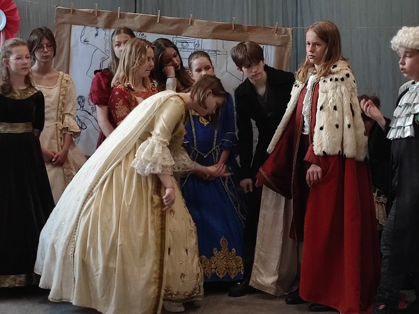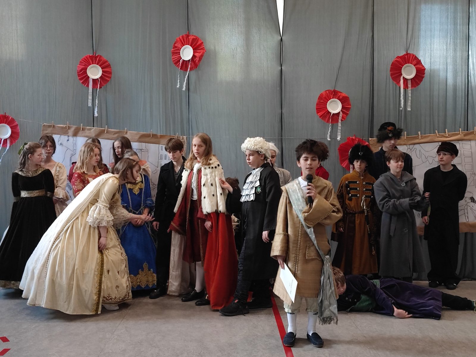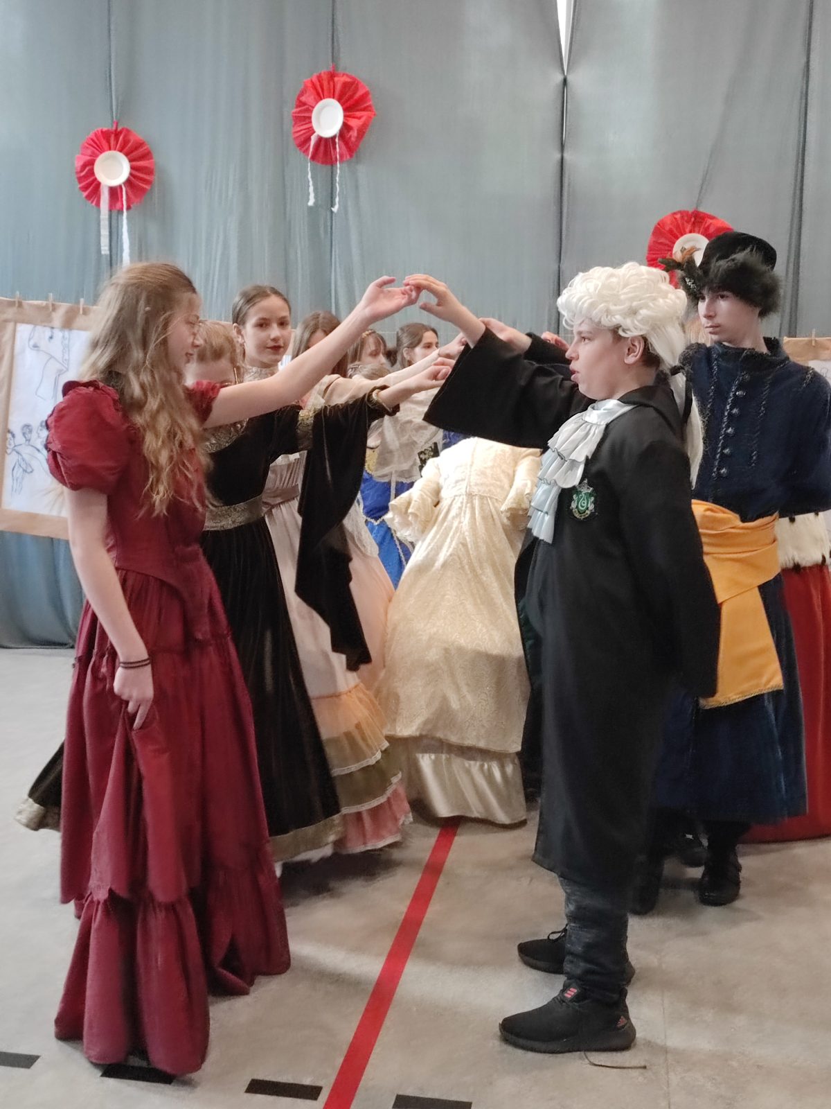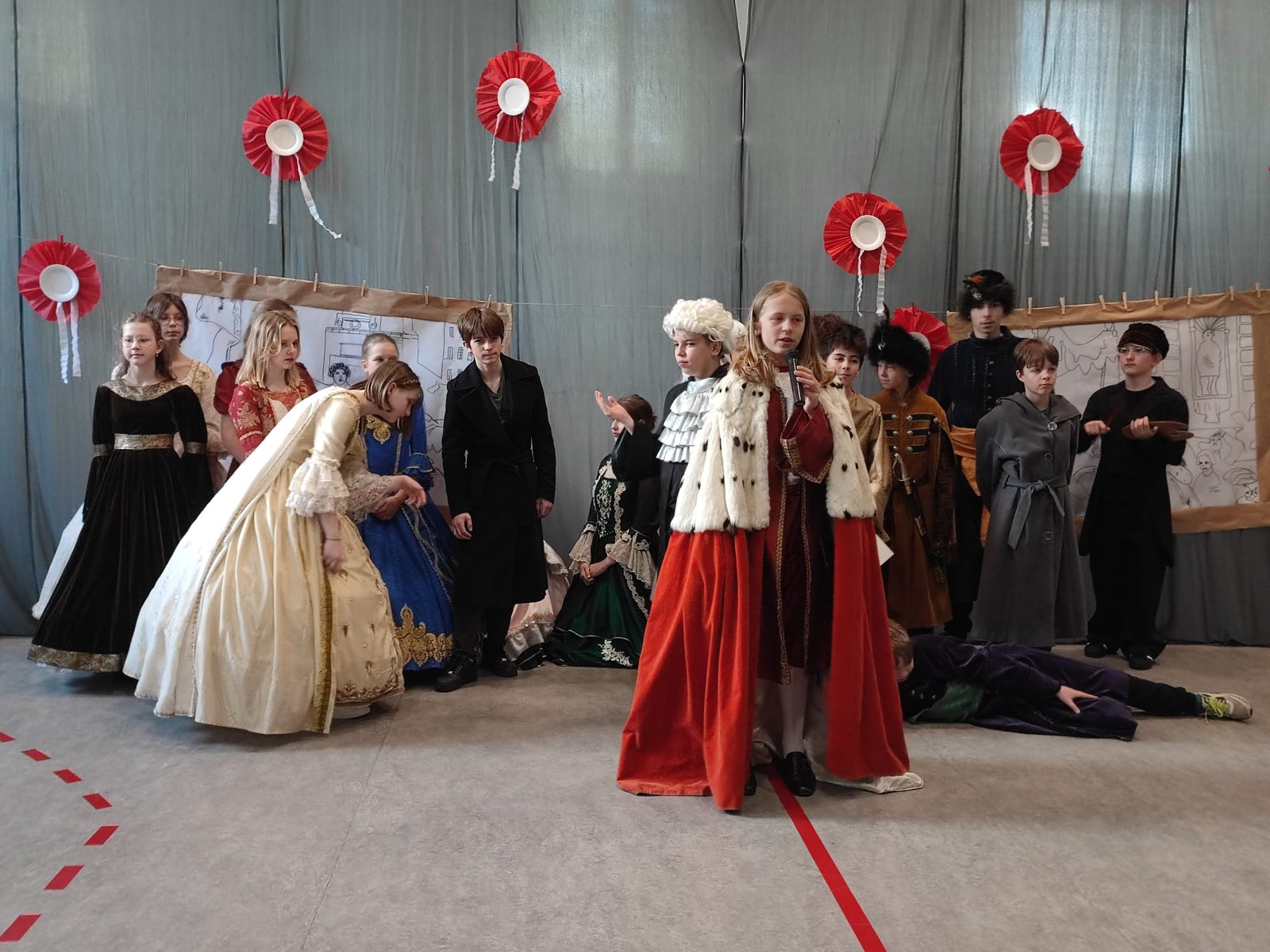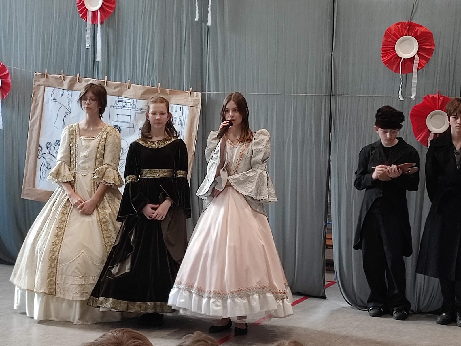 Z okazji 232. rocznicy uchwalenia Konstytucji 3 Maja w naszej szkole odbył się uroczysty apel. Uczniowie klas szóstych ubrani w stroje historyczne przybliżyli Rodzicom, Nauczycielom i Uczniom ciekawe wydarzenia z XVIII wieku. Wspaniale przystrojona sala przeniosła nas do minionej epoki. Szóstoklasiści pięknie zatańczyli poloneza oraz zaśpiewali hymn i pieśń z tamtego okresu pt. Mazurek 3 Maja. Odtworzyli również żywy obraz Jana Matejki.