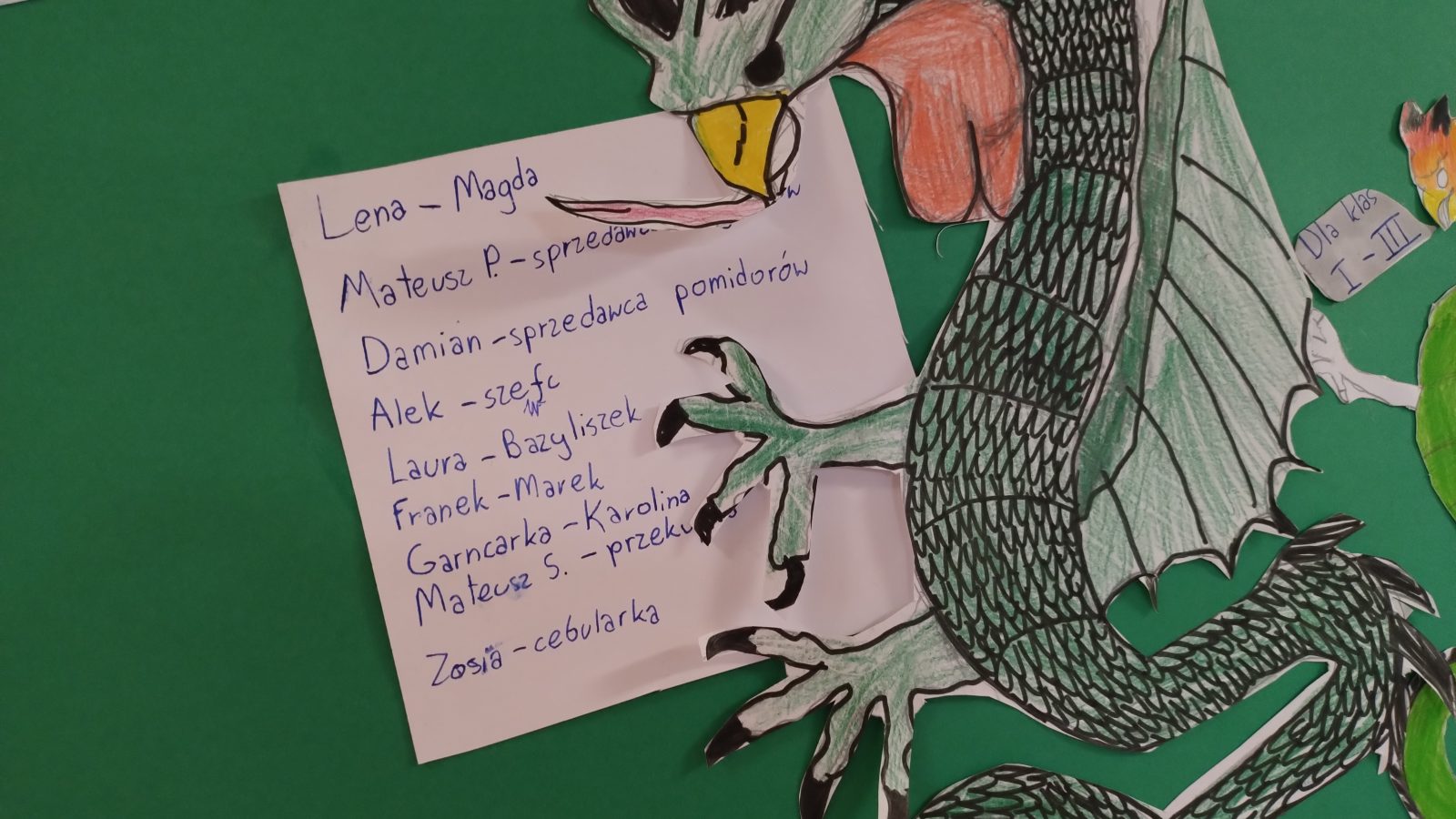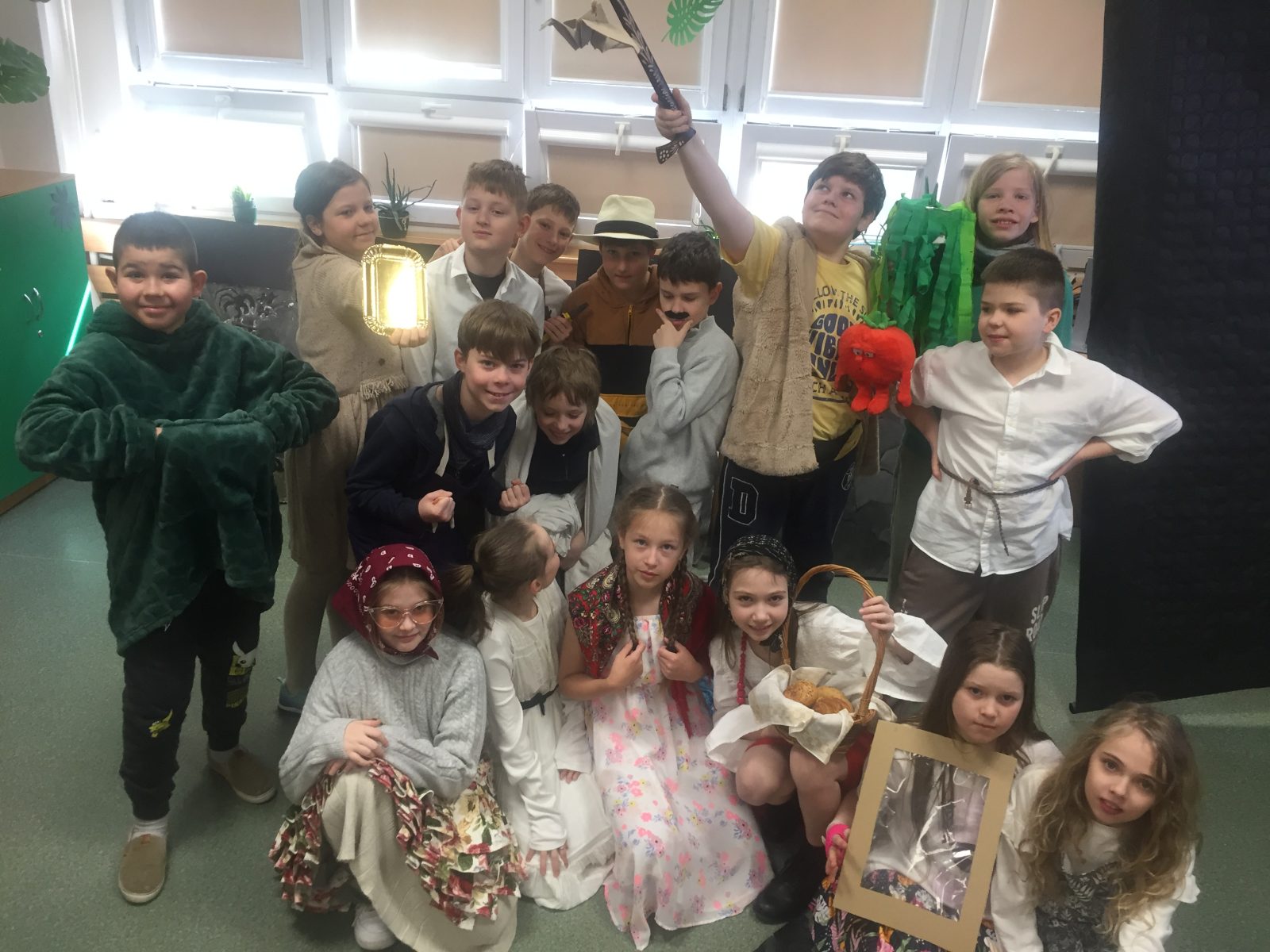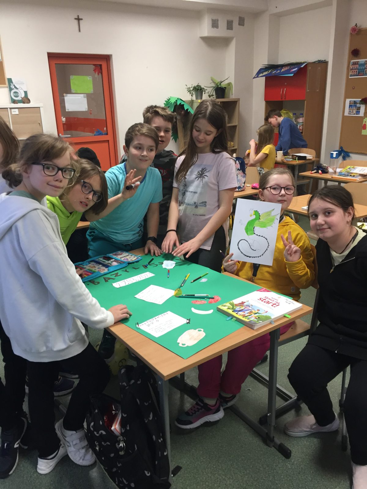 Klasy czwarte na lekcjach języka polskiego przygotowały spektakl o Bazyliszku. Przedstawienie, w różnych obsadach i wariantach scenicznych, zostało pokazane sześć razy dla widzów młodszych z klas 1-3.