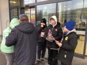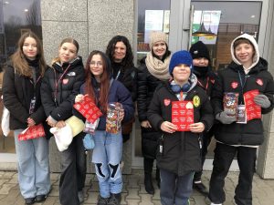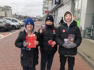 Koło południa nasi szóstoklasiści: Staś, Mateusz, Matylda, Małgosia, Szymon, Oskar, Janek, Zosia, Ewa, Hania, Marianna, Oliwia, razem z p. Aneta i p. Gabrysią, kwestowali wspólnie na rzecz Wielkiej Orkiestry Świątecznej Pomocy. Mogliście ich spotkać w okolicach Galerii Młociny. Do swoich puszek nazbierali razem 3012,32zł.