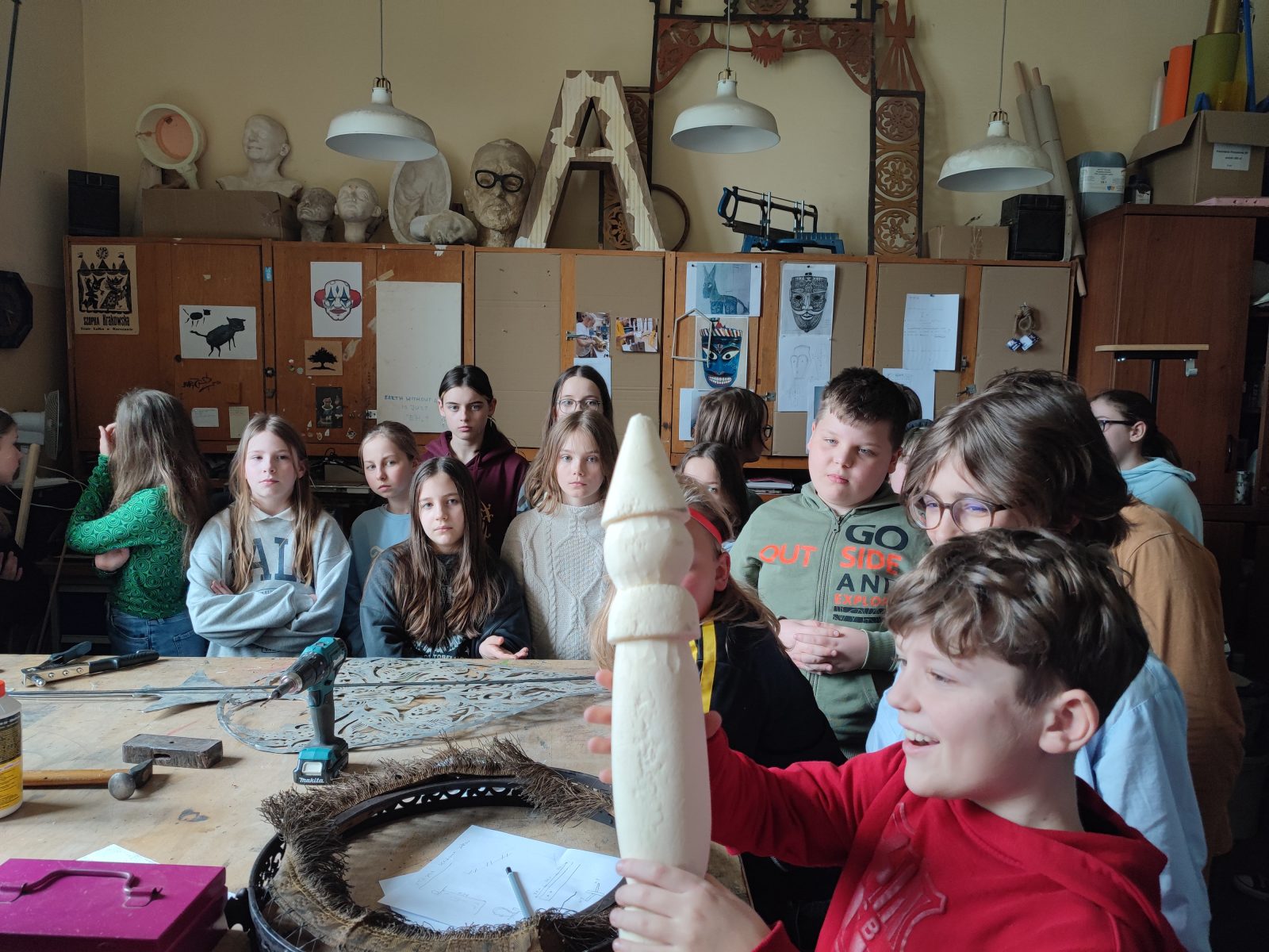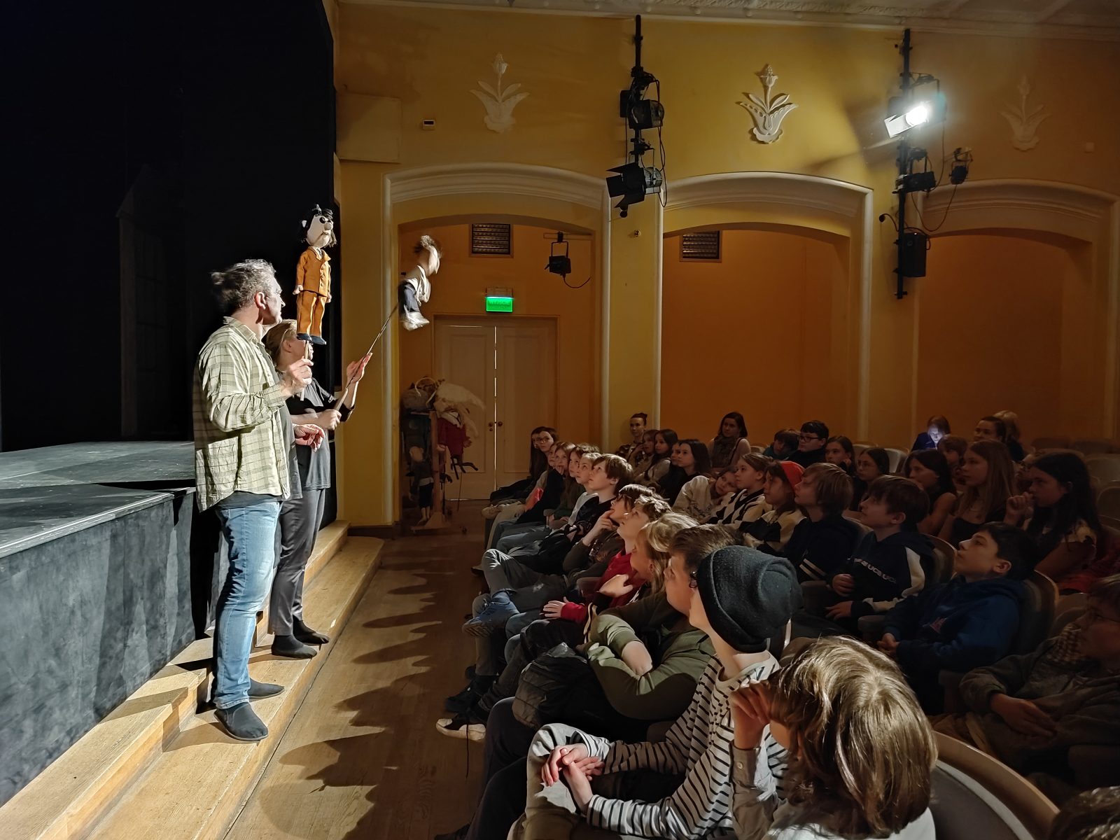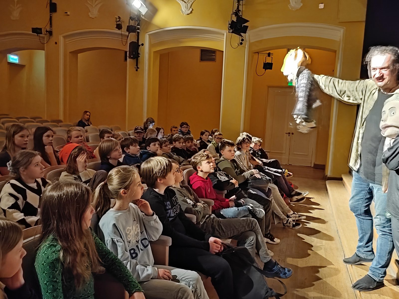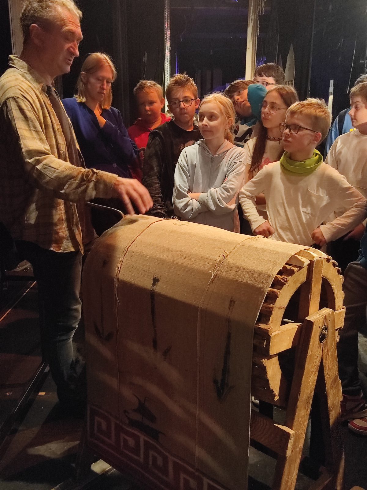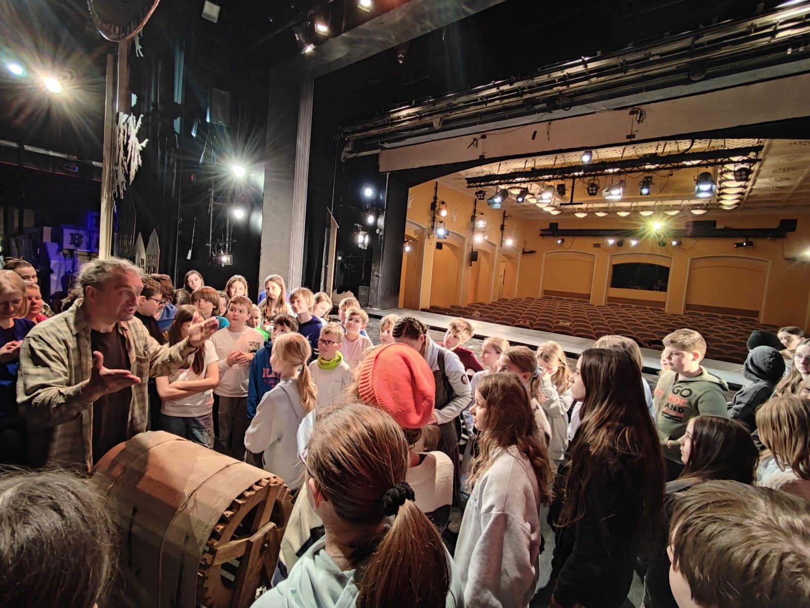 Dziś piątoklasiści zwiedzali kulisy Teatru Lalka. W czasie zajęć poznali różne rodzaje teatralnych lalek, zajrzeli do garderoby, pomieszczeń technicznych, teatralnego warsztatu, wyprodukowali deszcz, mgłę i wiatr.