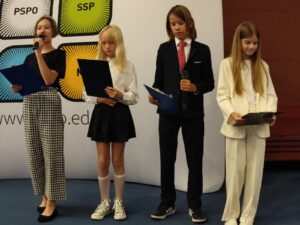Dziś w Auli Schumana uroczyście zakończyliśmy rok szkolny. Rozdaliśmy nagrody w konkursach przedmiotowych z polskiego, angielskiego, informatyki i matematyki oraz za najwyższe średnie w szkole. Przyznaliśmy trójce szóstoklasistów tytuł Primus Inter Pares oraz dwóm nauczycielom tytuł Nauczyciela na 6. Uroczystość wspaniale poprowadzili uczniowie klas czwartych.