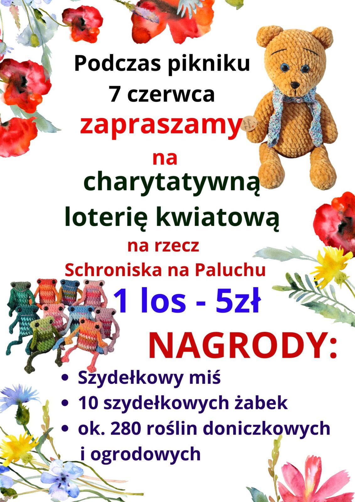 Coroczny piknik rodzinny za nami. Pogoda nie dopisała, ale nie ma co narzekać, bo mogła być gorsza. Za to dopisali goście, wszyscy w dobrych humorach. W miłym towarzystwie czas na pikniku szybko mijał. Na pożegnanie losowanie loterii kwiatowej dostarczyło wielu emocji. Dbajcie o swoje wylosowane kwiatki i do zobaczenia na pikniku za rok.