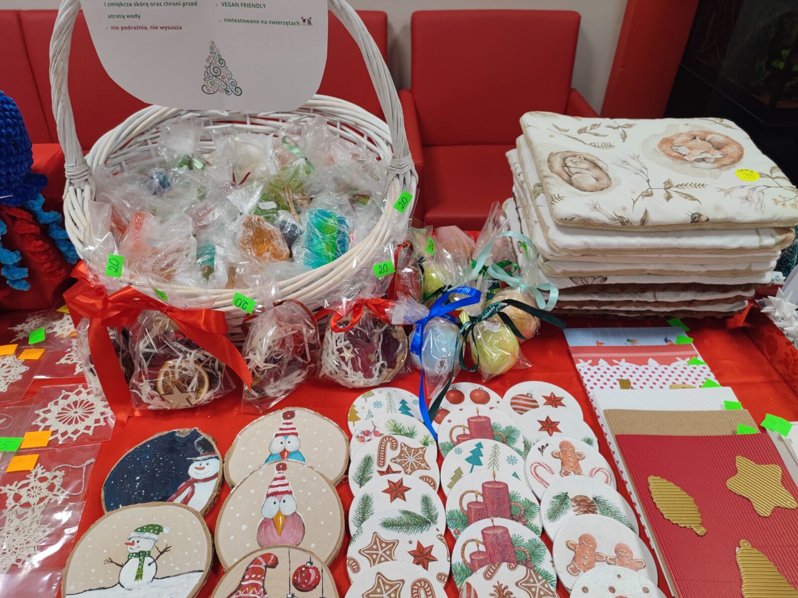 Serdecznie dziękujemy wszystkim artystom, którzy podarowali na nasz Charytatywny Kiermasz Świąteczny swoje rękodzieło. Dzięki Wam stoisko wyglądało dziś imponująco