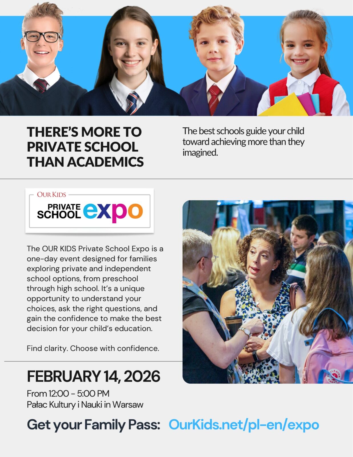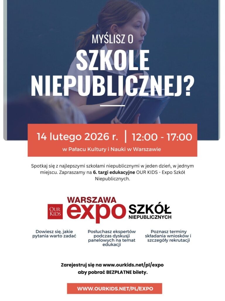 Już 14 lutego (w sobotę) w Pałacu Kultury i Nauki w Warszawie odbędą się 6. targi edukacyjne OUR KIDS – Expo Szkół Niepublicznych, w których również i my weźmiemy udział. Jeśli chcecie dowiedzieć się o nas czegoś więcej – zapraszamy. Do zobaczenia!