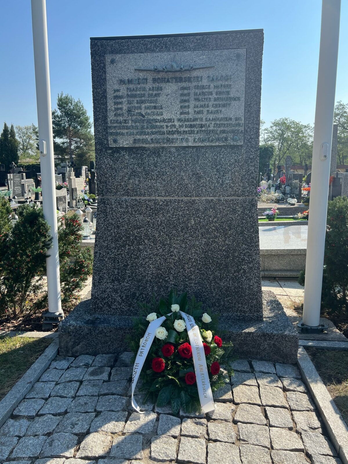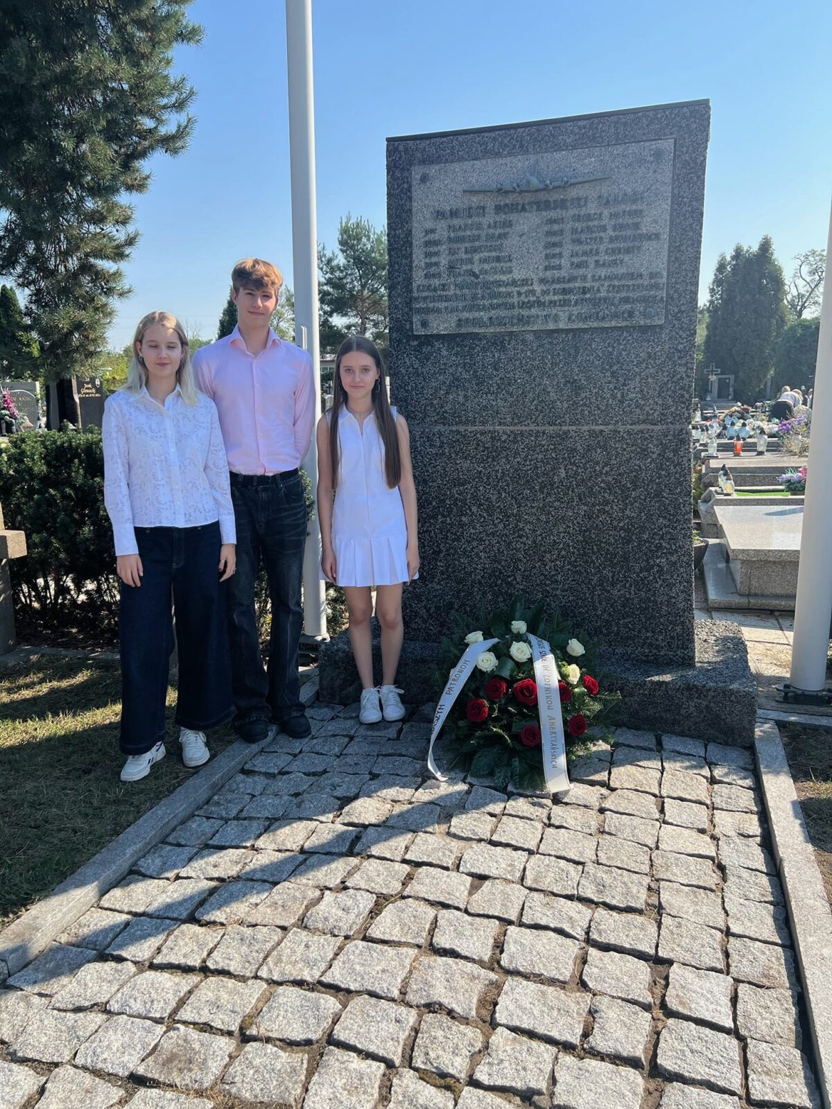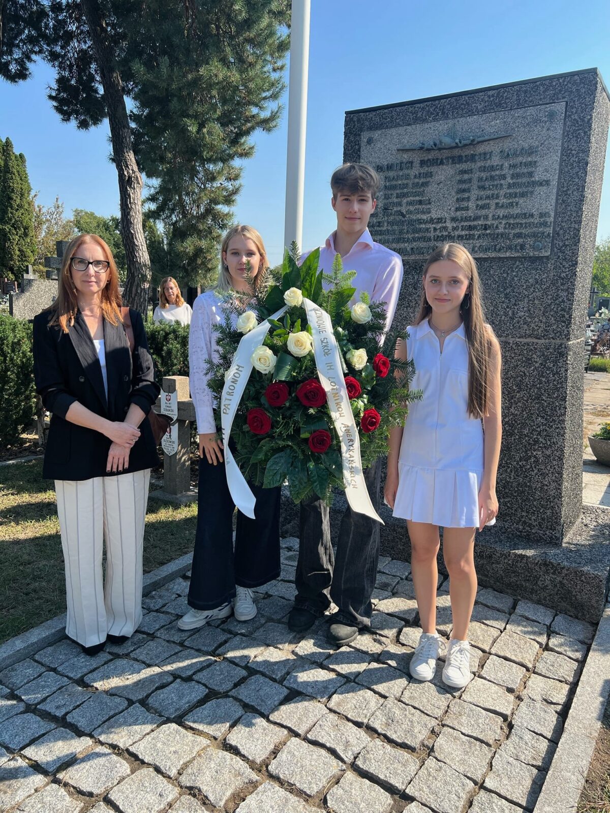 W rocznicę zestrzelenia 18 września 1944 roku nad Dziekanowem Leśnym amerykańskiego samolotu Boeing B-17G, niosącego pomoc walczącej Warszawie, delegacja naszych szkół złożyła w Kiełpinie kwiaty pod pomnikiem naszych Patronów – Lotników Amerykańskich.